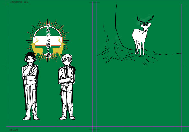 本当は二色刷りやりたいんだけどな…めんどいんだよな…版分け…。フルカラー表紙で二色っぽく無理やりやろうかな。